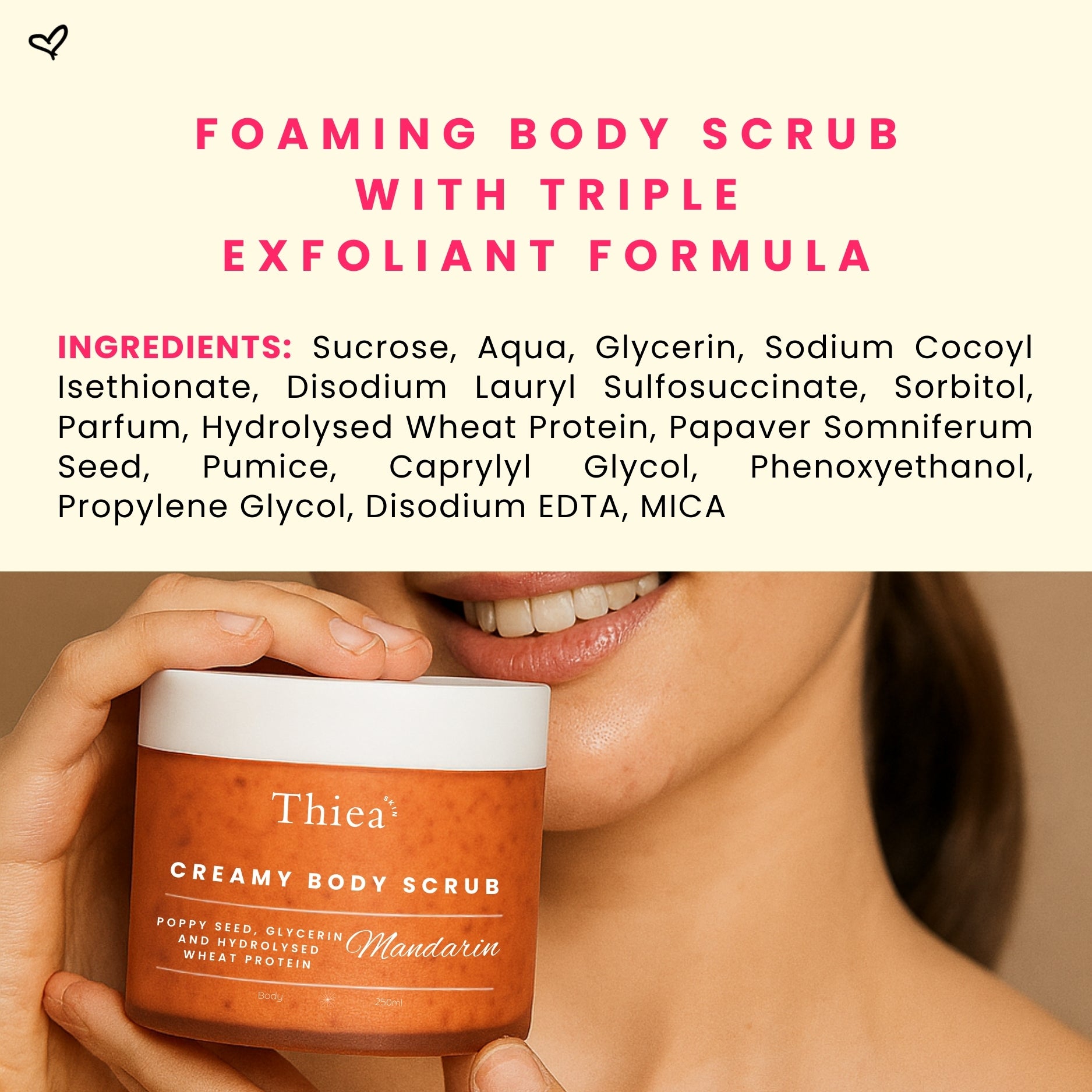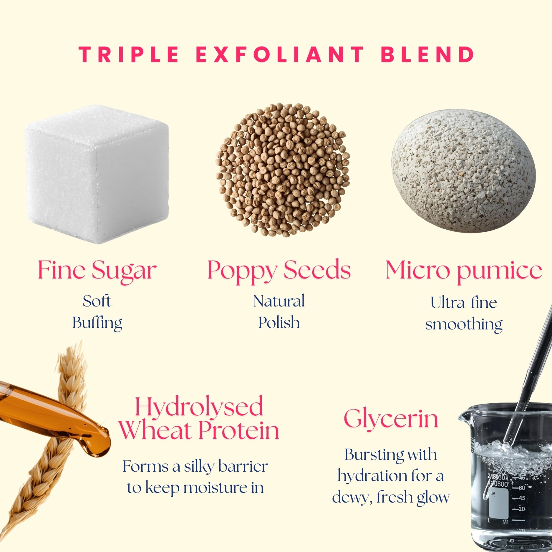 🍬 Sugar & Poppy Seeds – Exfoliate away dullness for a radiant glow.