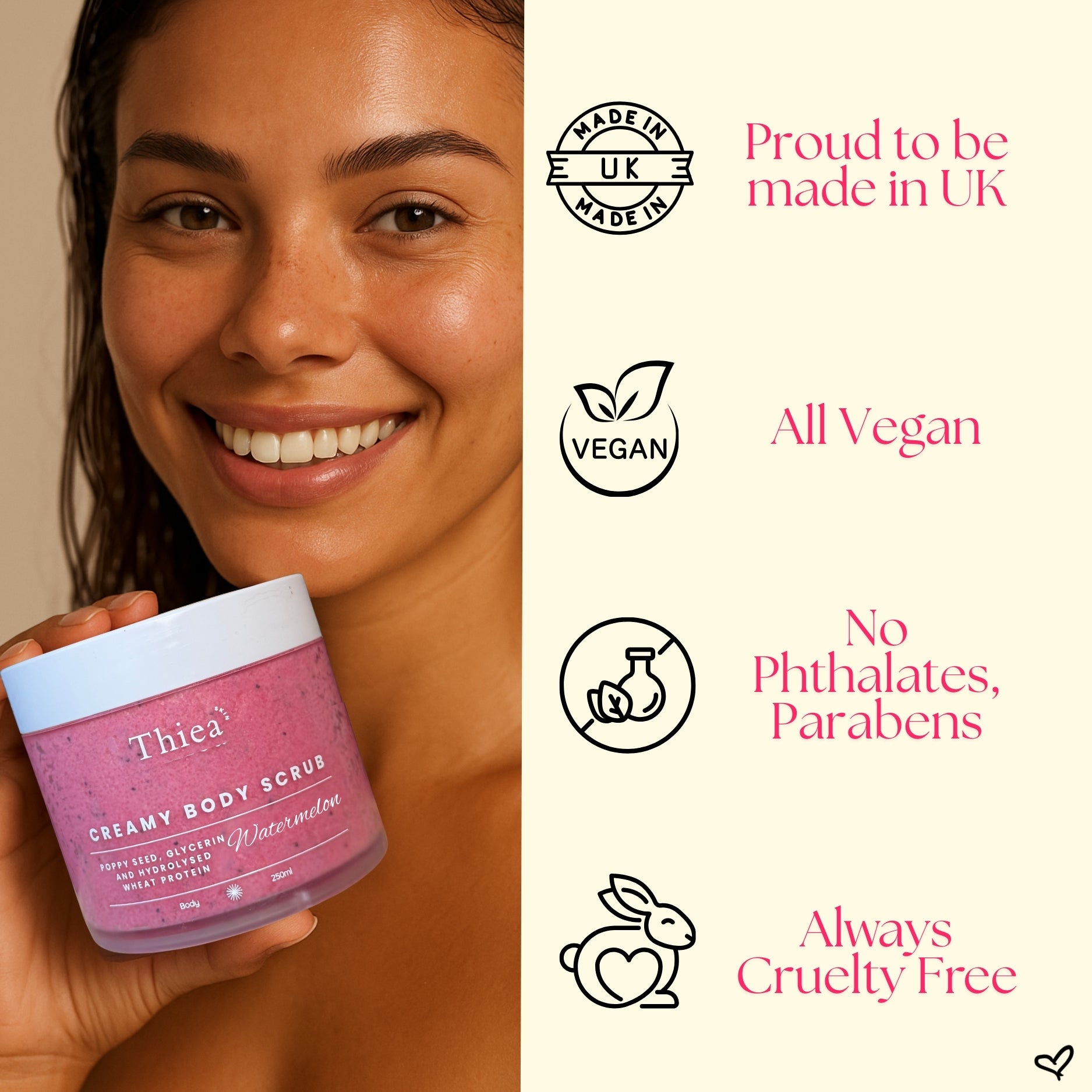 Our scrubs, creams, and soaps are formulated to be gentle and hydrating, suitable for all skin types — including dry and sensitive skin. Each formula is balanced with nourishing oils and butters to leave your skin soft, smooth, and glowing.