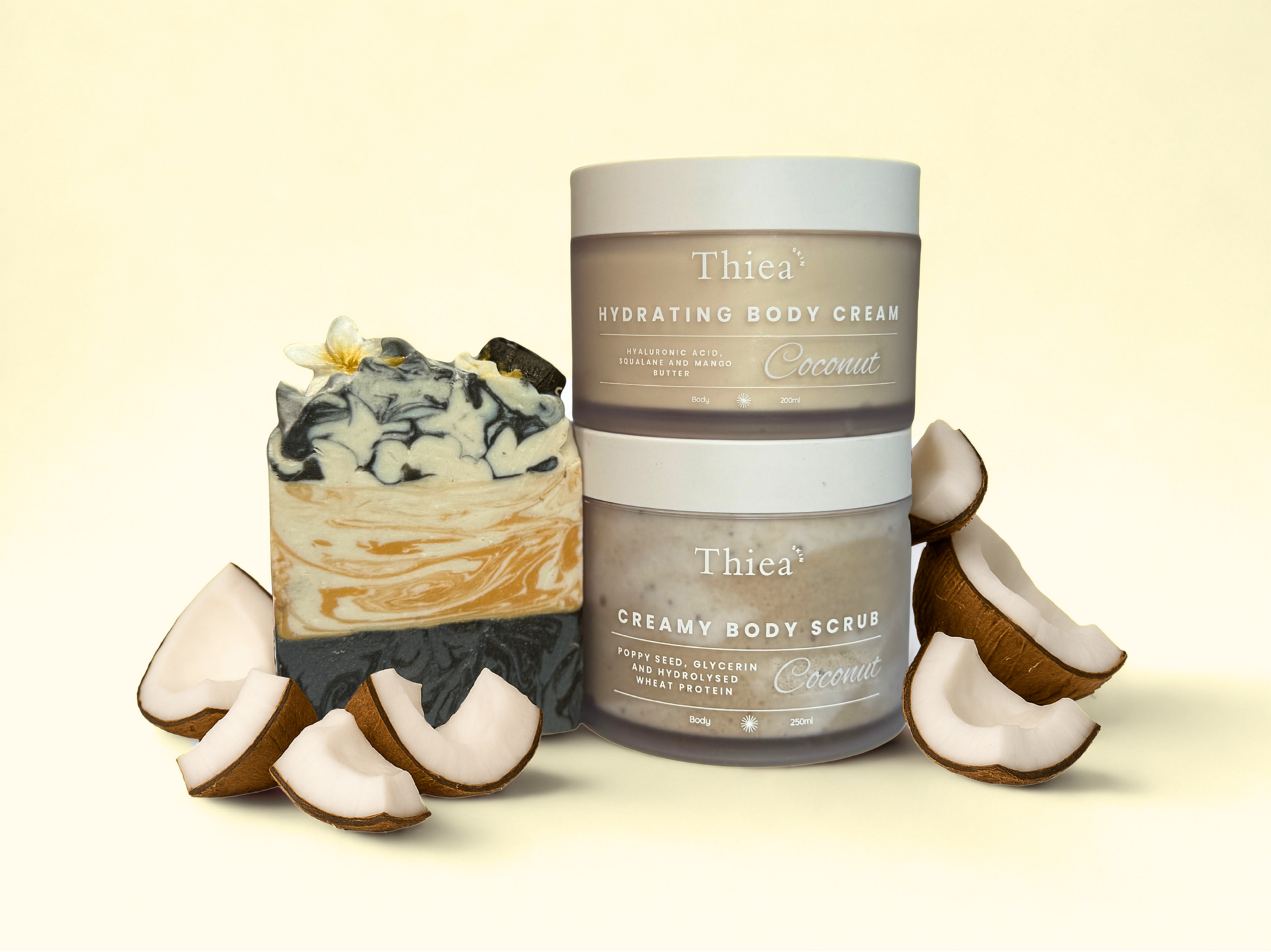 Transport yourself to the tropics with our Coconut Bundle! Featuring our coconut scrub, cream, and soap, this trio nourishes and hydrates while leaving you softly scented with island vibes.
