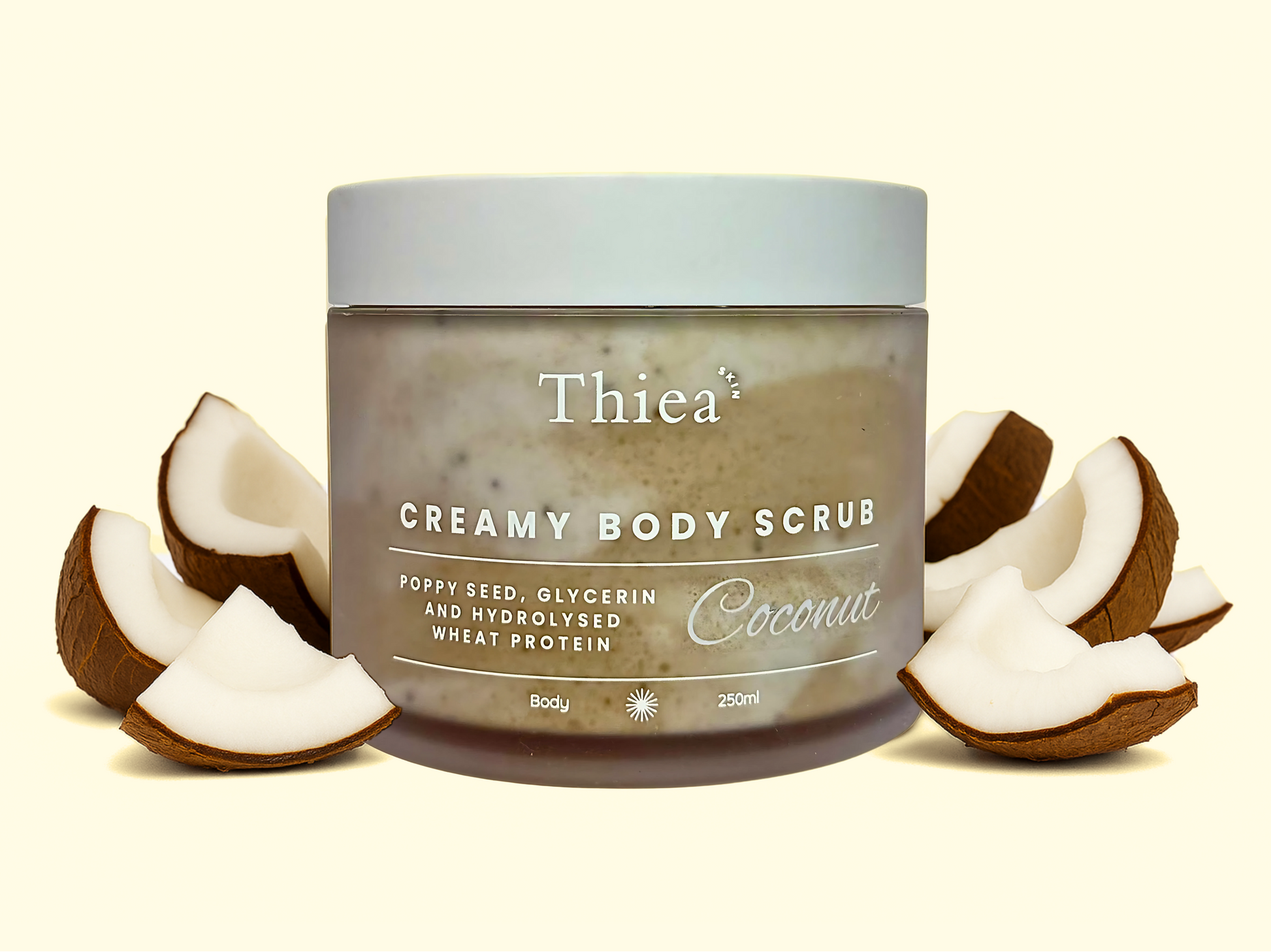 🧂 Coconut Scrub – Polishes away dullness with sugar & poppy seeds.